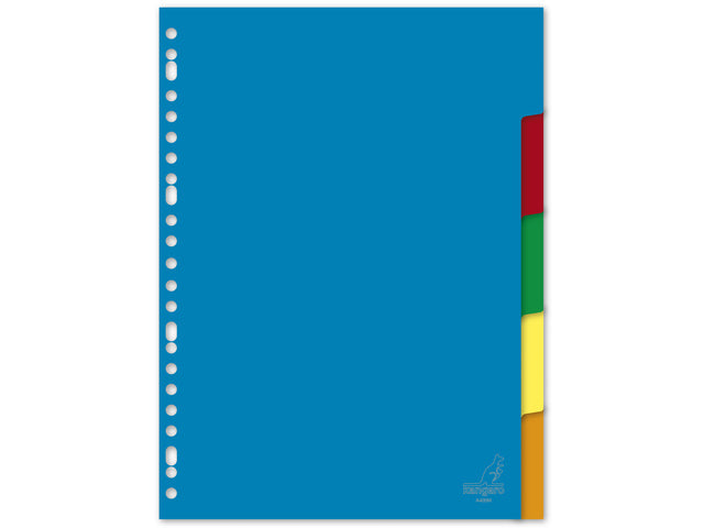 Kangaro 5-delige tabbladen set zonder bedrukking gemaakt van 120 micron PP zijn ideaal voor vrije indelingen. Ze zijn ontworpen voor gebruiksgemak in verschillende kleuren per set. De bladen en tabs zijn beschrijfbaar en dankzij de 23-gaats perforatie passen ze in diverse ringbanden. Elke set is verpakt in een krimpverpakking en geschikt voor A4-papierformaat. Inhoud 5 sets.