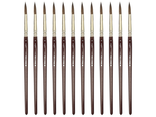 Deze penselen zijn gemaakt met zacht varkenshaar die goed beschermd worden door een lange gesloten aluminium huls waardoor de penselen schoon en in goede staat blijven. De penselen hebben een gelakte houten steel zodat ze goed vastgehouden kunnen worden en dus veilig en gemakkelijk gebruikt kunnen worden en vrijheid van beweging geven. Ze zijn geschikt voor olieverf, waterverf en acrylverf. Met deze penselen kunnen kunstenaars en hobbyisten hun artistieke talent ontdekken en kleurrijke meesterwerken creëren op papier, canvas of andere oppervlakken. Of het nu gaat om het schilderen van vrolijke landschappen, schattige dieren of fantasierijke figuren, deze penselen staan garant voor plezier en voldoening. Tip: Laat de verf niet opdrogen in de haren maar maak de penseel direct goed schoon als je ze niet meer gebruikt, dit verlengt de levensduur. De penselen hebben een ronde vorm in maat 10. Verpakt per 12 stuks.