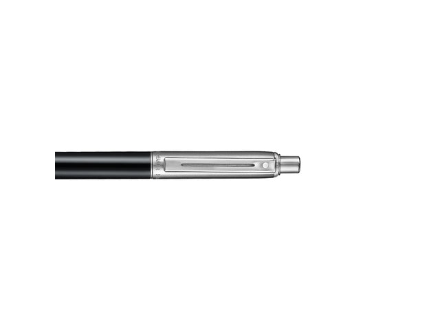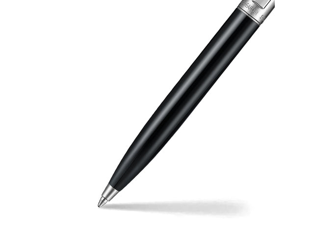 Sheaffer balpen Sentinel 332 met houder in glanzend zwart en gepolijst chroom met chroom gepolijste afwerking garandeert een nauwkeurig en betrouwbaar schrijfcomfort. Inclusief een universeel standaard Sheaffer medium balpenvulling in zwart. De Sheaffer balpen Sentinel is het slanke, ingetogen klassieke ontwerp met een solide en contrasterende afwerking die de look afmaken. De wereldwijd erkende witte Sheaffer stip, die symbool staat voor schrijfexcellentie, kwaliteit en prestige, is terug te vinden op de clip. De Sheaffer Sentinel pennen zijn beschikbaar in een breed scala van eigentijdse kleuren en worden geleverd in mooie geschenkdoos.