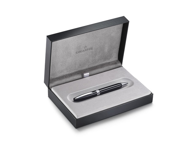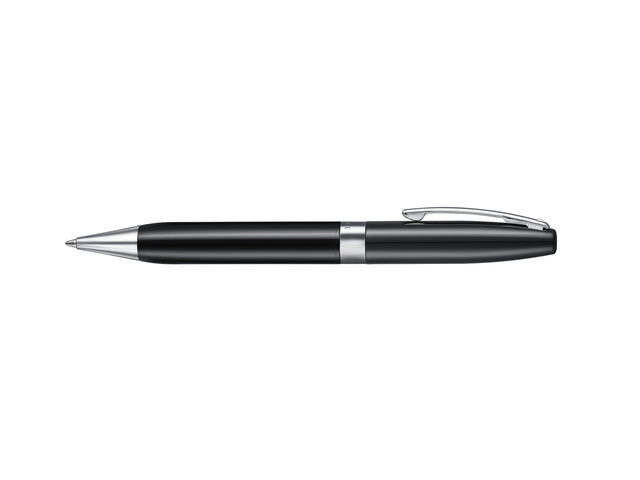 Sheaffer balpen Legacy 9064 in zwart met chroom gepolijste afwerking garandeert een nauwkeurig en betrouwbaar schrijfcomfort. Inclusief een universeel standaard Sheaffer medium balpenvulling in zwart. De Sheaffer balpen Legacy met robuust sigaarvormig profiel roept een gevoel van luxe vintage op. De wereldwijd erkende witte Sheaffer stip, die symbool staat voor schrijfexcellentie, kwaliteit en prestige, is terug te vinden op de clip. De Sheaffer Legacy pennen zijn beschikbaar als vulpen, rollerball en balpen en worden geleverd in mooie geschenkdoos.