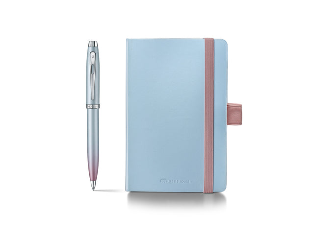 Sheaffer balpen Expressions 100 9376 en A6 notitieboek. De balpen in parelmoer met chrome afwerking garandeert een nauwkeurig en betrouwbaar schrijfcomfort. Inclusief een universeel standaard Sheaffer medium balpenvulling in zwart. De populaire Sheaffer balpen 100 met zijn moderne ontwerp en de subtiel uitgesneden clip, is een betaalbare manier om de schrijfervaring naar een hoger niveau te tillen en tegelijkertijd indruk te maken. De wereldwijd erkende witte Sheaffer stip, die symbool staat voor schrijfexcellentie, kwaliteit en prestige, is terug te vinden op de clip. De balpen en notitieboek worden geleverd in mooie geschenkdoos.