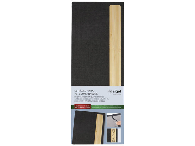 Drankkaart map Sigel 1/2 A4 smal Eco serie D.grijs/hout voor 8 blad