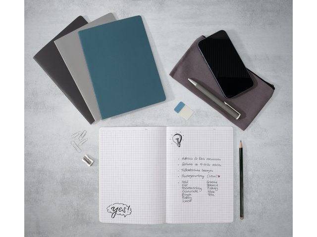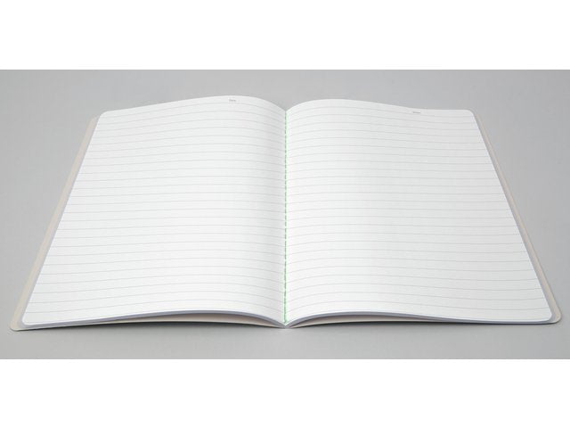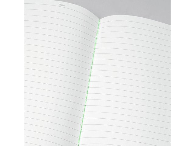 Sigel Linescape A5 notitieschrift met zichtbaar contrasterende kleur genaaide binding. Softcover omslag van bedrukt structuurpapier. Met 68 pagina's gelinieerd 80 grams FSC-gecertificeerd papier. Afmeting notitieschrift 148x210x10mm. Kleur omslag lichtgrijs, stiksel lime. Set van 2 stuks.