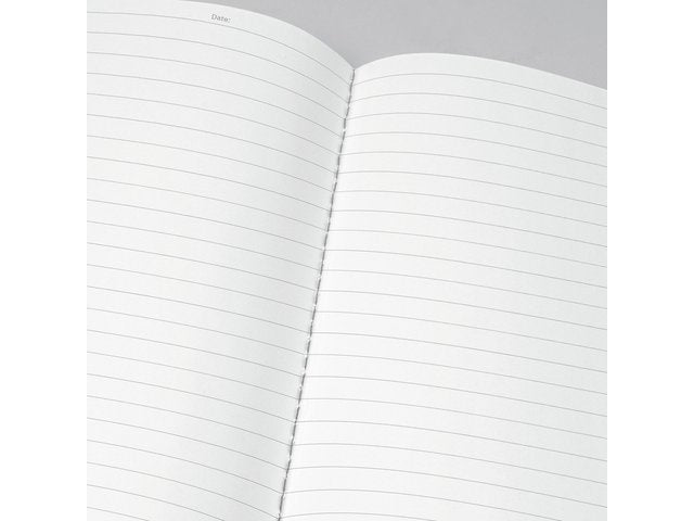 Sigel Linescape A5 notitieschrift met zichtbaar contrasterende kleur genaaide binding. Softcover omslag van bedrukt structuurpapier. Met 68 pagina's gelinieerd 80 grams FSC-gecertificeerd papier. Afmeting notitieschrift 148x210x10mm. Kleur omslag donkergrijs, stiksel lichtgrijs. Set van 2 stuks.