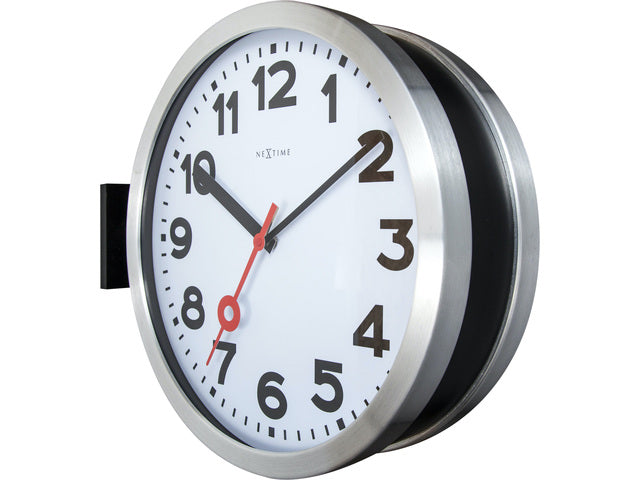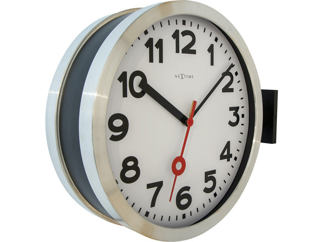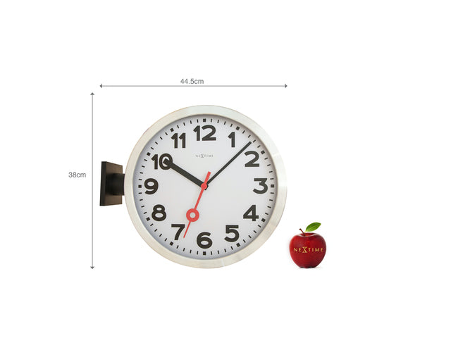 Niemand houdt van iemand met twee gezichten, maar klokken? Ja! Deze bekende en klassieke station klok is niet wat je denkt. Deze klok heeft twee kanten om op te hangen, hij is stil en zeer accuraat. Zelfs als zou je het willen, je zal nooit meer de tijd kwijt zijn!