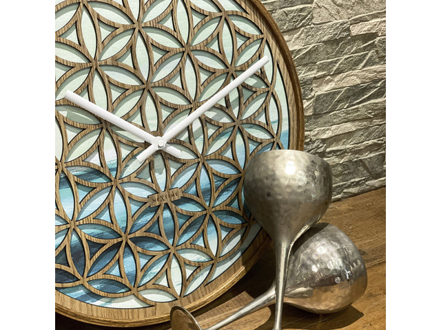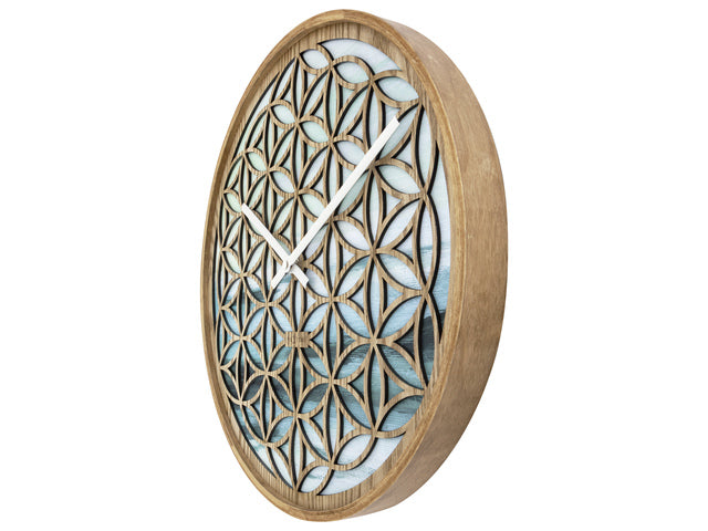 De NeXtime Concord stille wandklok (40cm) heeft een natuurlijk houtsnijwerk in een harmonisch bloemenpatroon. Onder het patroon zijn de kleuren luchtig aquarel en kalmerend groen gebruikt. Ontworpen door Jett Scheib, de klok cre?ert een verbinding met de natuur en zal zeker elegantie en rust in de kamer brengen. Deze klok werkt op 1 x AA-batterij (niet inbegrepen).