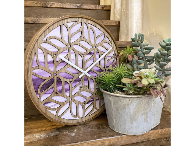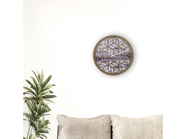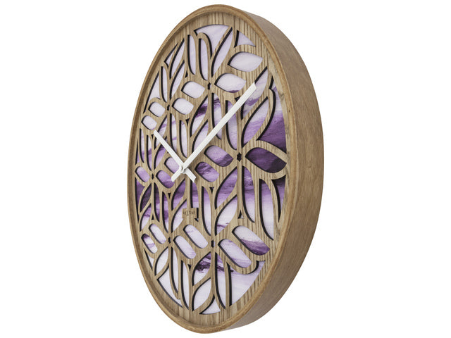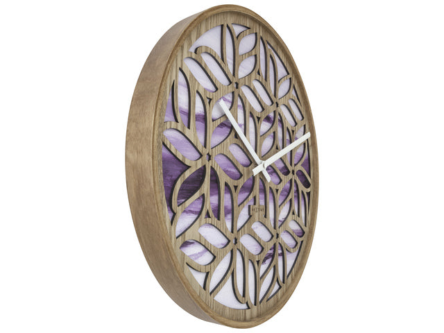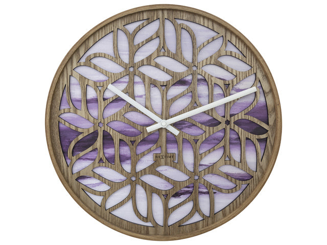 De NeXtime Yogi stille wandklok (40cm) heeft een natuurlijk houtsnijwerk in een harmonisch bloemenpatroon. Onder het patroon zijn de kleuren luchtig aquarel en kalmerend paars gebruikt. Ontworpen door Jett Scheib, de klok cre?ert een verbinding met de natuur en zal zeker elegantie en rust in de kamer brengen. Deze klok werkt op 1 x AA-batterij (niet inbegrepen).