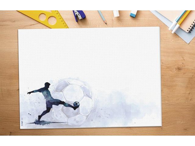 Praktische bureauonderlegger speciaal voor kleuters en basisschoolleerlingen. Formaat A3 van hoogwaardig 80 grams papierkwaliteit (FSC-gecertificeerd) met dot-liniatuur (punt-gelijnd) en afbeelding. De papier-schrijfonderlegger heeft 30 vel en kan als een afscheurblok worden gebruikt. De stevige kartonnen rug met verlijming aan de onderkant en gedeeltelijk aan de bovenkant voorkomen dat de hoeken omknikken. Ideaal formaat voor op school of thuis: een blikvanger, decoratief, praktisch en beschermt de keukentafel of het bureau tegen geknoei Uitvoering Goal Zone.