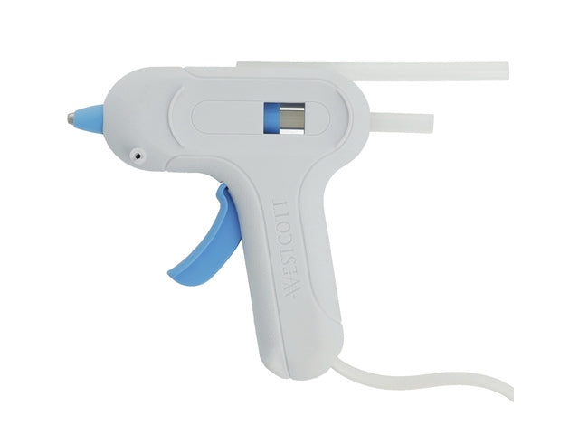 Westcott mini-lijmpistool voor hoge temperaturen met ergonomische handgreep en extra grote trekker voor betere controle tijdens het gebruik. Met geïntegreerde lijmstifthouder en 2 mini-lijmstiften (0,7mm). Voorzien van uitklapbare standaard en snoerlengte van 1,52m. Ideaal voor touw, kurk, kralen, leer, hout, stof en bloemen. Klaar voor gebruik na een opwarmfase van 5 minuten. Let op: raak de verwarmde spuitmond of gesmolten lijm niet aan, de temperatuur kan oplopen tot 200° of hoger.