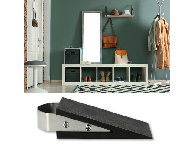 De deurstopper is gemaakt van stevig, krasvrij rubber. Deze deurstopper voor op de vloer houdt de deur open, ook als er een dranger op zit. De deurstopper is voorzien van een handgreep, zo kunt u hem makkelijk weghalen om de deur te laten sluiten. Afmeting: 5x3x12cm ( ca. 150gram)