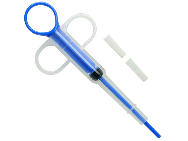 Tablettenhulp voor het eenvoudig en gecontroleerd toedienen van pillen en vloeibare medicijnen aan honden, katten, cavia's, konijnen en andere huisdieren. De toedieningshulp kan worden gebruikt voor het grootbrengen van jonge dieren die nog niet zelfstandig eten. Lengte 15 cm. Inclusief 2 opzetstukken. Kleur blauw.