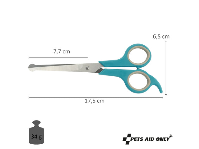 De vachtschaar is gemaakt van staal van hoge kwaliteit. De afgeronde punten van de schaar voorkomen verwondingen aan gevoelige of moeilijk bereikbare lichaamsdelen van het huisdier, zoals tussen de poten, ogen, oren of neus. Perfect voor honden, katten maar ook voor kleinere dieren als konijnen en cavia's. Totale lengte 17,5 cm, lemmetlengte 7,7 cm.