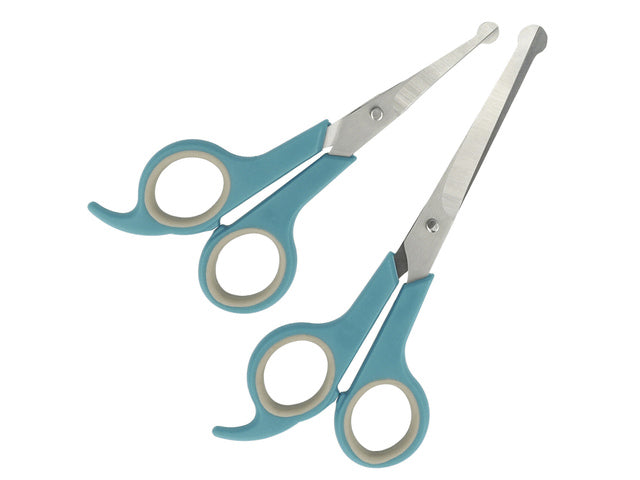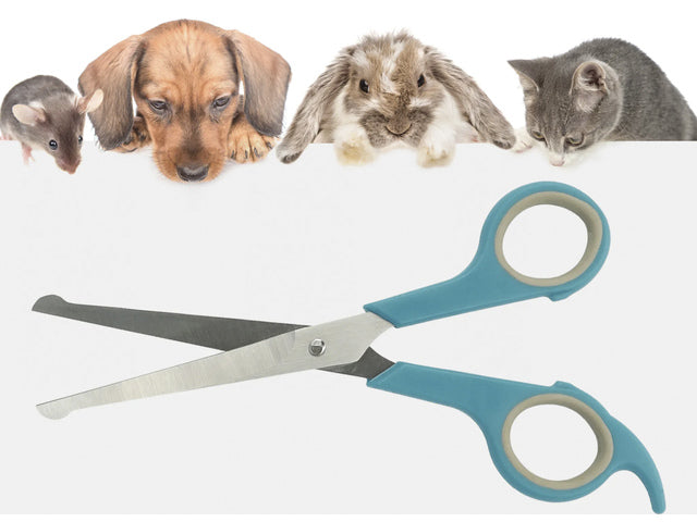 De vachtschaar is gemaakt van staal van hoge kwaliteit. De afgeronde punten van de schaar voorkomen verwondingen aan gevoelige of moeilijk bereikbare lichaamsdelen van het huisdier, zoals tussen de poten, ogen, oren of neus. Perfect voor honden, katten maar ook voor kleinere dieren als konijnen en cavia's. Set van 2 scharen totale lengte 14,8 / lemmet 5,1 cm en totale lengte 17,5 cm / lemmet 7,7 cm.