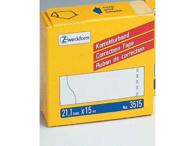 Correctietape voor de schrijfmachine of met de hand te beschrijven. Bedekt de ondergrond volledig. Etiketten zitten op een rol