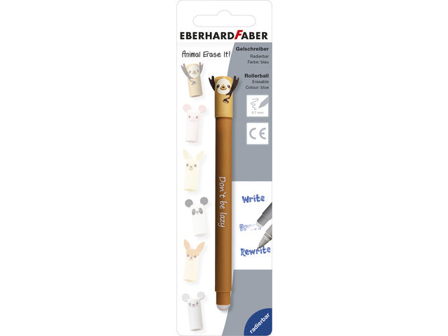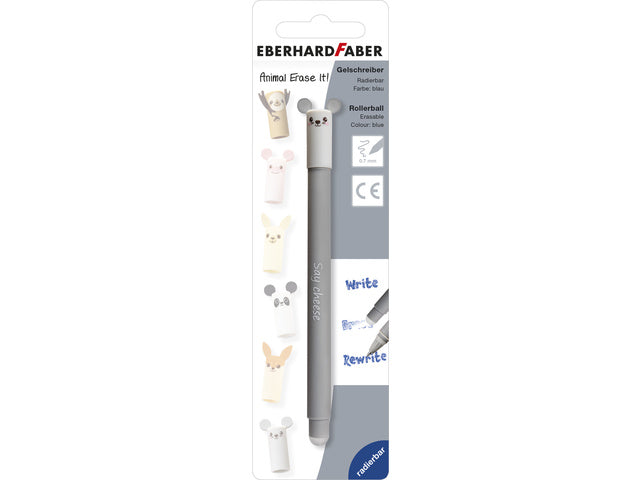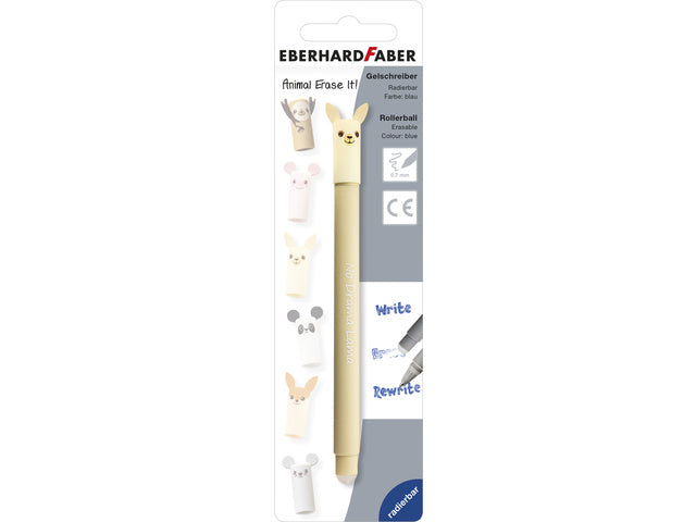Gelpen Eberhard Faber Animal Erase-It blister ass. kleur schrijfkl. blauw