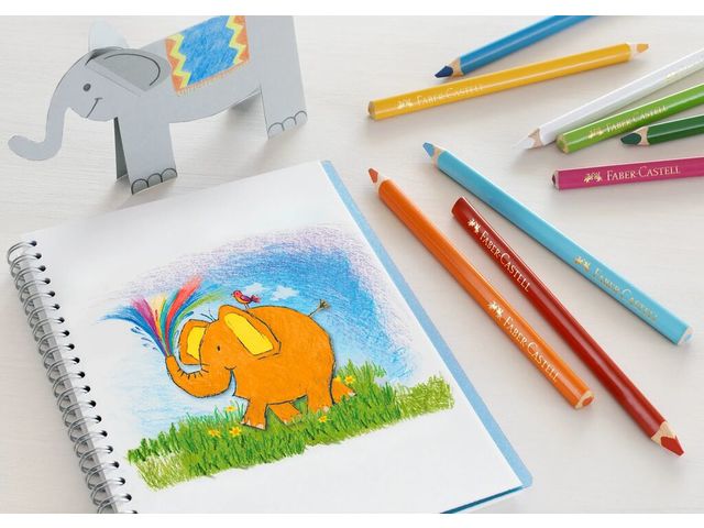 Kleurpotloden Jumbo traingular Faber-Castell in heldere kleuren. 12 stuks in een etui. De dikte is 5,4 mm.