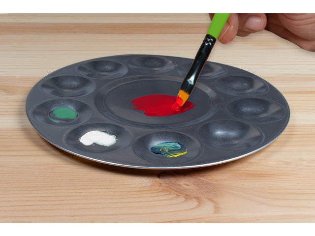 Het aluminium mengpalet met 10 napjes is de ideale keuze voor elke kunstenaar. Ontworpen voor zowel professionele kunstenaars als kunststudenten, biedt dit palet veelzijdigheid en gebruiksgemak. Met afmetingen van 17 x 17 cm is het compact en toch ruim genoeg voor al je mengbehoeften. Dankzij het gladde aluminium oppervlak is het palet eenvoudig schoon te maken voor herhaaldelijk gebruik. Het ergonomische ontwerp maakt het gemakkelijk vast te houden, zelfs met de duim, waardoor je comfortabel kunt werken gedurende lange sessies. Of je nu werkt met tempera, aquarel, acryl- of olieverf, dit palet biedt de perfecte basis voor je creatieve uitingen, zowel in de studio als in het klaslokaal.