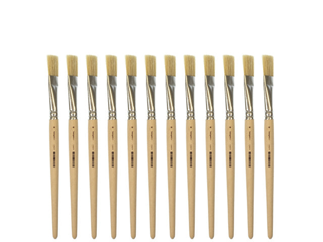 Deze speciaal ontworpen penselen zijn gemaakt met zacht varkenshaar die goed beschermd worden door een lange gesloten aluminium huls waardoor de penselen schoon en in goede staat blijven. De penselen hebben een korte ronde ongelakte houten steel zodat ze goed vastgehouden kunnen worden en dus veilig en gemakkelijk gebruikt kunnen worden en vrijheid van beweging geven. De penselen hebben een platte vorm in maat 16. Ze zijn geschikt voor olieverf, waterverf en acrylverf. Met deze penselen kunnen jonge kunstenaars hun artistieke talent ontdekken en kleurrijke meesterwerken creëren op papier, canvas of andere oppervlakken. Of het nu gaat om het schilderen van vrolijke landschappen, schattige dieren of fantasierijke figuren, de Lyonse penselen staan garant voor plezier en voldoening. Tip: Laat de verf niet opdrogen in de haren maar maak de penseel direct goed schoon als je ze niet meer gebruikt, dit verlengt de levensduur.