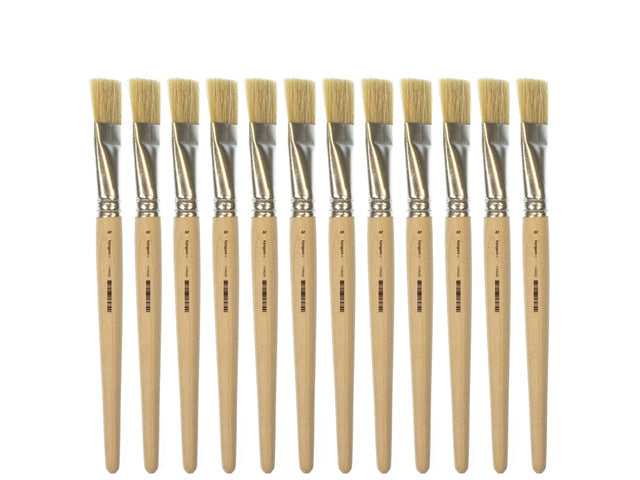 Deze speciaal ontworpen penselen zijn gemaakt met zacht varkenshaar die goed beschermd worden door een lange gesloten aluminium huls waardoor de penselen schoon en in goede staat blijven. De penselen hebben een korte ronde ongelakte houten steel zodat ze goed vastgehouden kunnen worden en dus veilig en gemakkelijk gebruikt kunnen worden en vrijheid van beweging geven. De penselen hebben een platte vorm in maat 20. Ze zijn geschikt voor olieverf, waterverf en acrylverf. Met deze penselen kunnen jonge kunstenaars hun artistieke talent ontdekken en kleurrijke meesterwerken creëren op papier, canvas of andere oppervlakken. Of het nu gaat om het schilderen van vrolijke landschappen, schattige dieren of fantasierijke figuren, de Lyonse penselen staan garant voor plezier en voldoening. Tip: Laat de verf niet opdrogen in de haren maar maak de penseel direct goed schoon als je ze niet meer gebruikt, dit verlengt de levensduur.