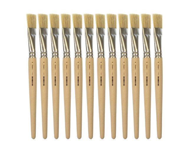 Deze speciaal ontworpen penselen zijn gemaakt met zacht varkenshaar die goed beschermd worden door een lange gesloten aluminium huls waardoor de penselen schoon en in goede staat blijven. De penselen hebben een korte ronde ongelakte houten steel zodat ze goed vastgehouden kunnen worden en dus veilig en gemakkelijk gebruikt kunnen worden en vrijheid van beweging geven. De penselen hebben een platte vorm in maat 22. Ze zijn geschikt voor olieverf, waterverf en acrylverf. Met deze penselen kunnen jonge kunstenaars hun artistieke talent ontdekken en kleurrijke meesterwerken creëren op papier, canvas of andere oppervlakken. Of het nu gaat om het schilderen van vrolijke landschappen, schattige dieren of fantasierijke figuren, de Lyonse penselen staan garant voor plezier en voldoening. Tip: Laat de verf niet opdrogen in de haren maar maak de penseel direct goed schoon als je ze niet meer gebruikt, dit verlengt de levensduur.