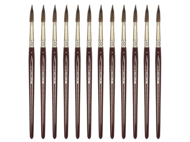Deze penselen zijn gemaakt met zacht varkenshaar die goed beschermd worden door een lange gesloten aluminium huls waardoor de penselen schoon en in goede staat blijven. De penselen hebben een gelakte houten steel zodat ze goed vastgehouden kunnen worden en dus veilig en gemakkelijk gebruikt kunnen worden en vrijheid van beweging geven. Ze zijn geschikt voor olieverf, waterverf en acrylverf. Met deze penselen kunnen kunstenaars en hobbyisten hun artistieke talent ontdekken en kleurrijke meesterwerken creëren op papier, canvas of andere oppervlakken. Of het nu gaat om het schilderen van vrolijke landschappen, schattige dieren of fantasierijke figuren, deze penselen staan garant voor plezier en voldoening. Tip: Laat de verf niet opdrogen in de haren maar maak de penseel direct goed schoon als je ze niet meer gebruikt, dit verlengt de levensduur. De penselen hebben een ronde vorm in maat 12. Verpakt per 12 stuks.
