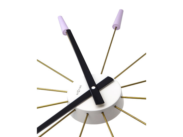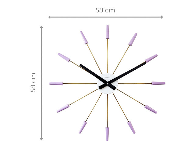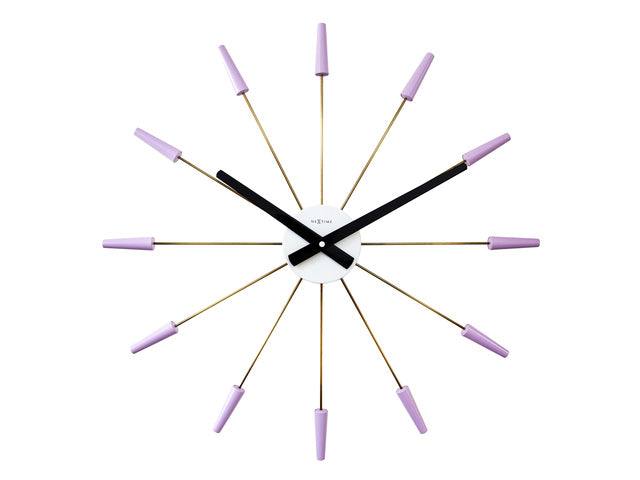 Wandklok Plug-Inn (58cm) van NeXtime heeft een tijdloos design die al vele jaren te vinden is in de NeXtime collectie. Deze versie heeft zachte stijlvolle lavendelkleurige pins met een wit metalen wijzeplaat. Deze bestseller past in veel verschillende woonstijlen en maakt van klokkijken een feestje! Deze klok werkt op 1 x AA batterij (niet inbegrepen).