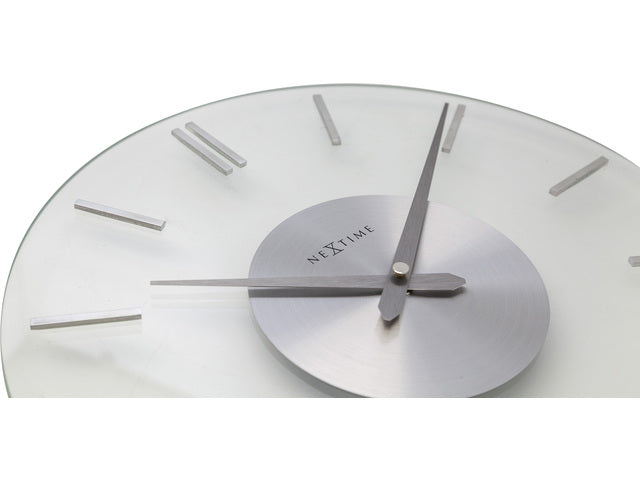 De NeXtime Stripe wandklok heeft een wijzerplaat van helder glas. De wijzers en de uuraanduiding zijn gemaakt van aluminium en de uren worden weergegeven met 3D strepen. De combinatie van deze materialen geeft deze klok een moderne eigentijdse uitstraling. Afm. 31cm