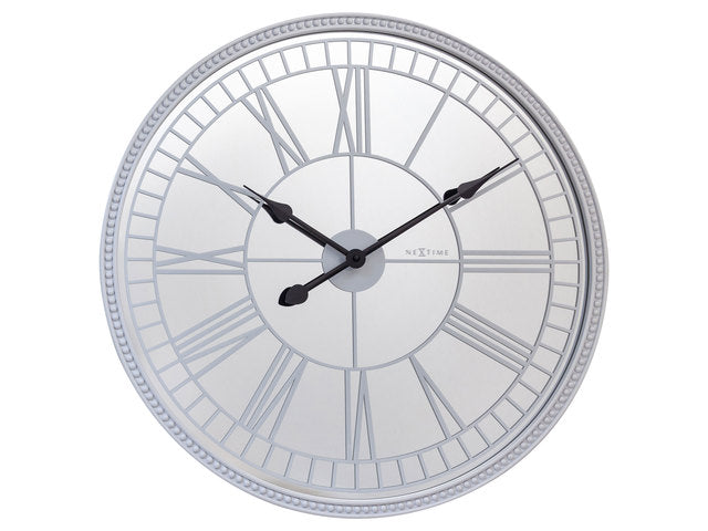 De NeXtime "Cleopatra Mirror" grote wandklok (56cm) creëert een illusionaire ruimte alsof u wordt vervoerd naar de oude tijd om te genieten van Cleopatra's schoonheid. De spiegelklok heeft een zwarte kast met gedrukte zwarte romeinse index en romantische wijzers. Deze stille klok werkt op 1 AA batterij (niet inbegrepen).