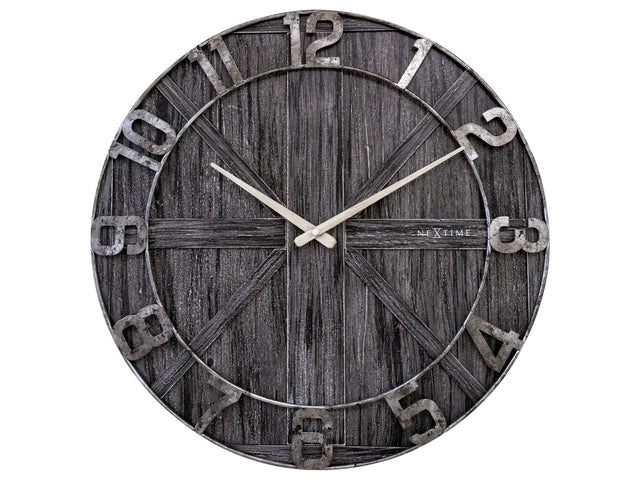 De grote NeXtime "York" wandklok (Ø 50cm) is een ware blikvanger en maakt een groot statement in elke kamer. De zwarte robuuste wijzerplaat is gemaakt van écht hout wat elke klok uniek maakt. De klok heeft klassieke witte wijzers en grote metalen index cijfers die het klokkijken zelfs van verre afstand makkelijk maakt. Deze klok is stil (dus erg geschikt voor de slaapkamer) en werkt op 1x AA batterij (niet inbegrepen)