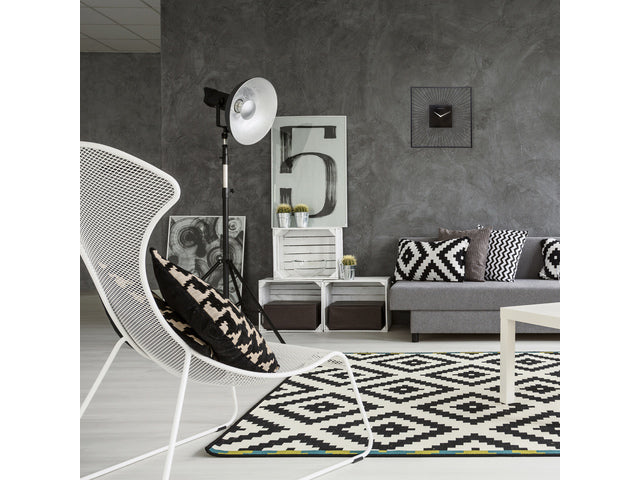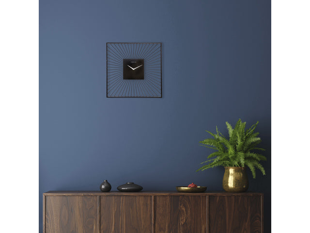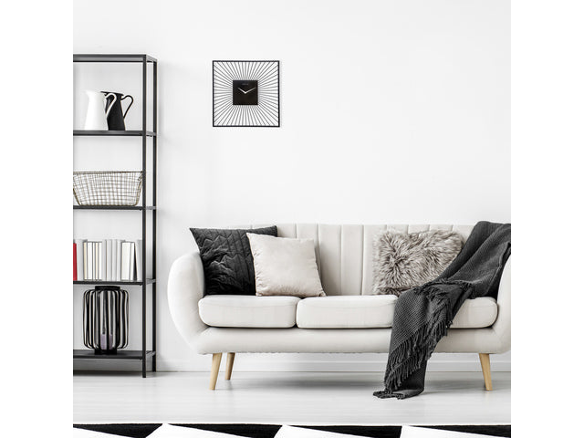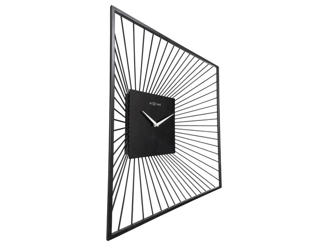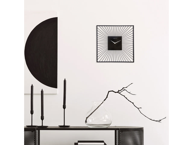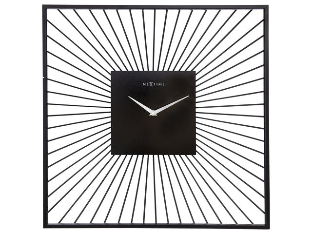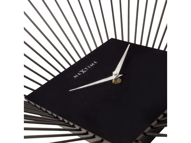 De NeXtime Vasco stille wandklok (45x45cm) is een moderne metalen sculptuur. Zwarte metalen draden die uit de wijzerplaat stralen, verandert de klok van een tijdapparaat tot een pronkstuk in de kamer. Deze klok werkt op 1 x AA-batterij (niet inbegrepen).