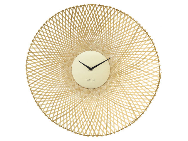 De Vortex (60 cm) wandklok heeft een prachtig geweven natuurlijke bamboe ontwerp en straalt een zachte, natuurlijke sfeer uit. Het unieke spiraalvormige patroon creëert een betoverend middelpunt en mengt organische elegantie met moderne eenvoud. Dit opvallende ontwerp is een perfect statement voor natuurliefhebbers. Deze stille klok werkt op 1 x AA batterij (niet meegeleverd).