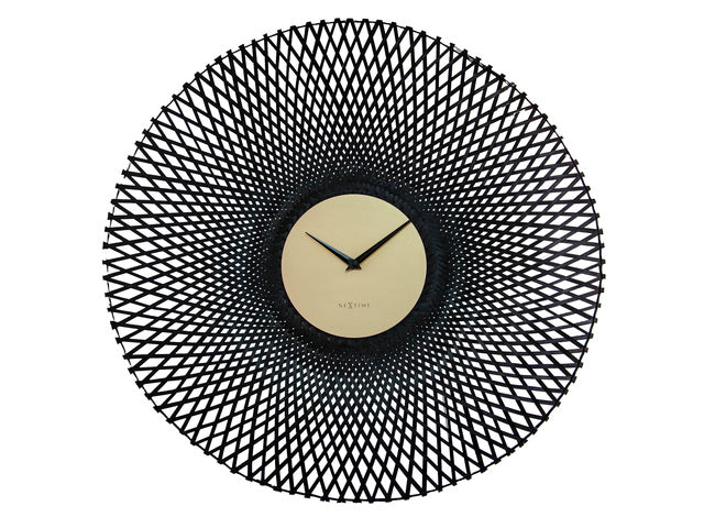 De Vortex (60 cm) wandklok heeft een prachtig geweven bamboe ontwerp in zwart en straalt een natuurlijke sfeer uit. Het unieke spiraalvormige patroon creëert een betoverend middelpunt en mengt organische elegantie met moderne eenvoud. Dit opvallende ontwerp is een perfect statement voor natuurliefhebbers. Deze stille klok werkt op 1 x AA batterij (niet meegeleverd).