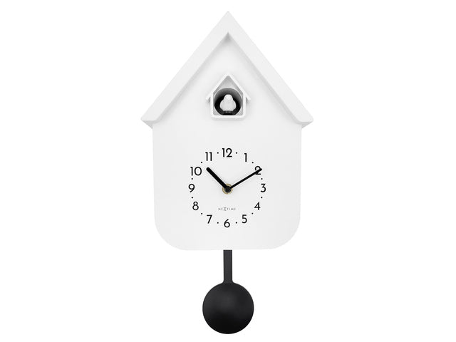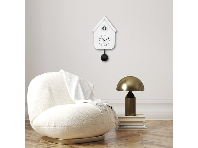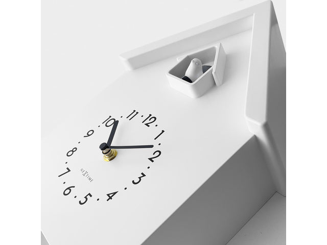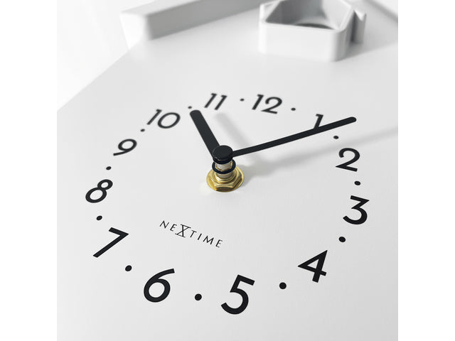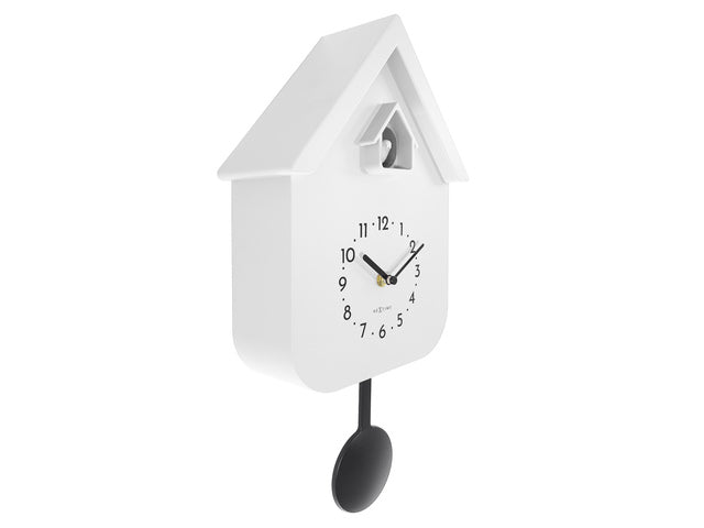 De Twitter (21,5 x 41,5 cm ) is een speelse draai van de klassieke koekoeksklok en combineert vintage charme met een eigentijdse look in een coole kleur. Geniet van het wakker worden met natuurgeluiden, die het verstrijken van de tijd zachtjes markeren. Het geluid kan ook uitgeschakeld worden. De stille klok werkt op 3 x AA-batterijen (niet inbegrepen). Kleur wit.