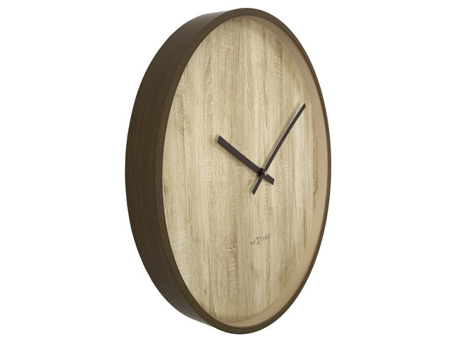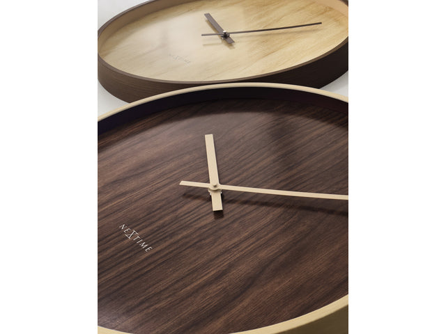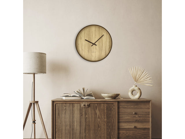 De Oslo Large (50 cm) is een stijlvolle kunststof wandklok met wijzerplaat in donkerbruine walnootlook. De klok combineert het beste van Scandinavisch minimalisme en Japanse Zen. Het perfecte decoratiestuk voor een interieur met neutrale tinten en minimalistische inrichting. Deze stille klok werkt op 1 x AA-batterij (niet inbegrepen).