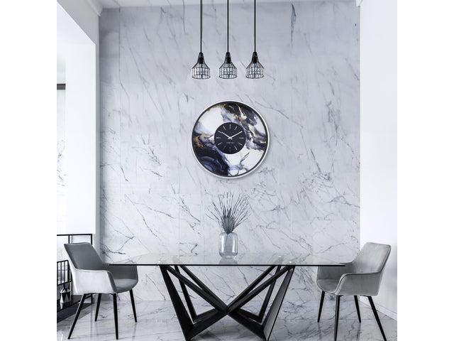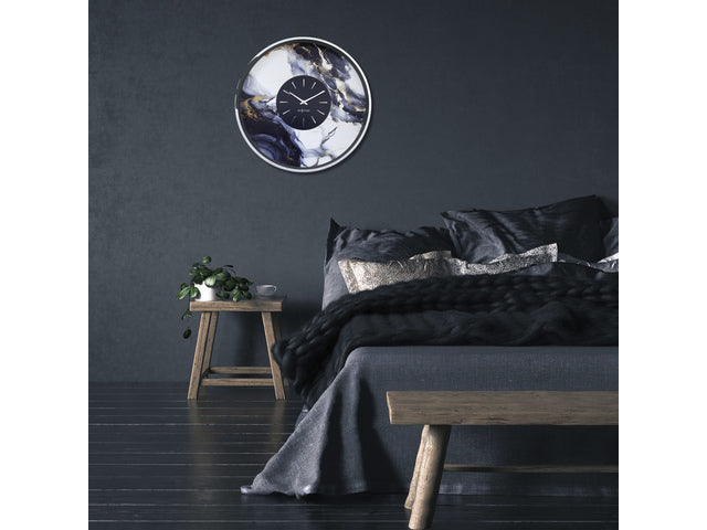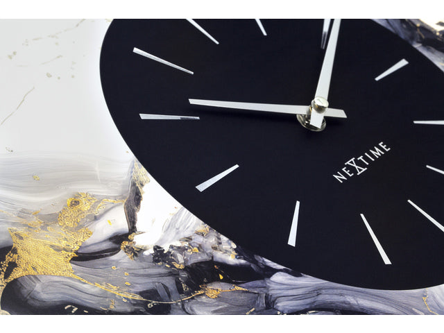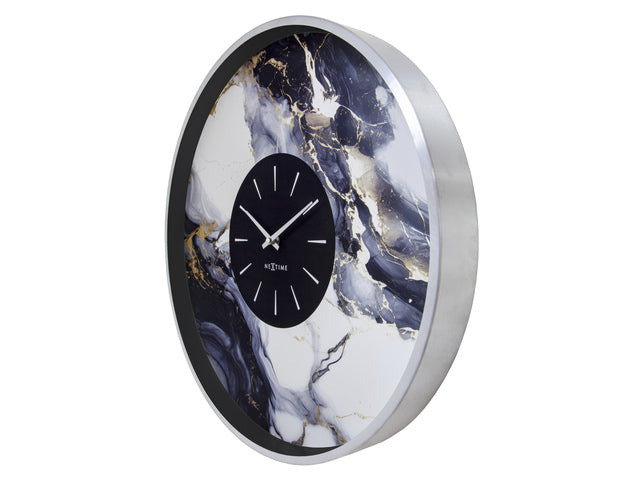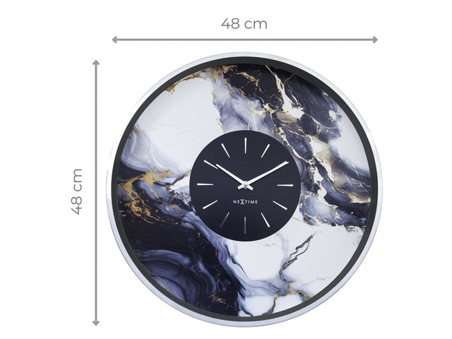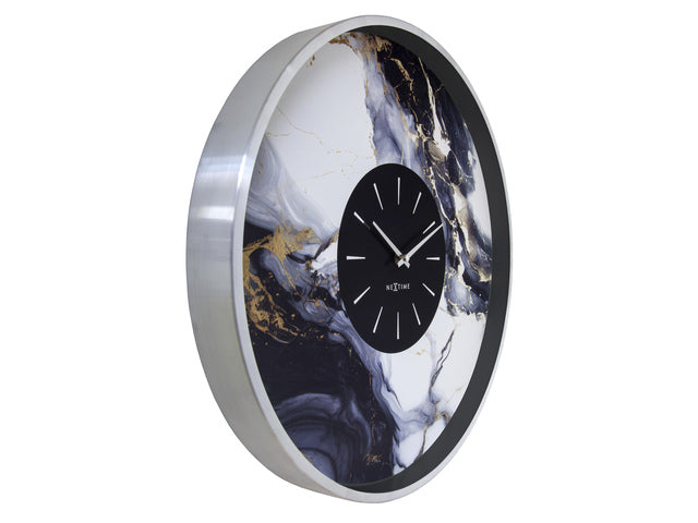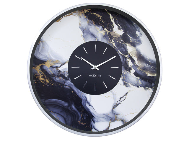 Wandklok Marble Duo (48cm) van NeXtime vormt door zijn natuurlijk elegante marmerpatroon een prachtig contrast met de verfijnde, glinsterende zilveren tijdsaanduiding. Dit resulteert in een harmonieuze combinatie die geschikt is voor zowel hedendaagse als klassieke interieurs. Het marmeren patroon geeft de klok een tijdloze uitstraling, terwijl het zilveren accent een vleugje glamour toevoegt. Deze klok werkt op 1 x AA batterij (niet inbegrepen).