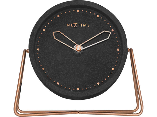 De Nextime Cross Table klok heft een klassiek minimalistisch ontwerp met een twist in het materiaal. Deze betonnen schoonheden zullen zeker een eyecatcher zijn, waar je deze ook plaatst. Met het metalen element is dit samen een heel andere sfeer. Het rosé goud geeft deze klok een moderne en trendy look met een stijlvolle accenten. Afmeting klok 17.5x15.5x5 cm. Deze klok is stil en werkt op 1 AA batterij (niet inbegrepen).