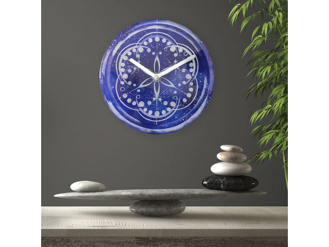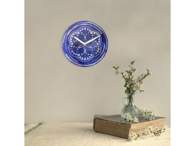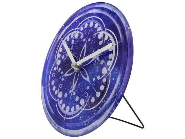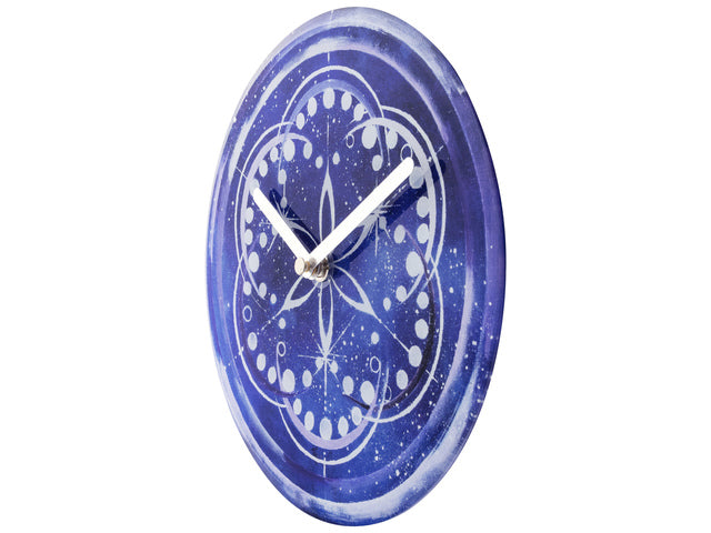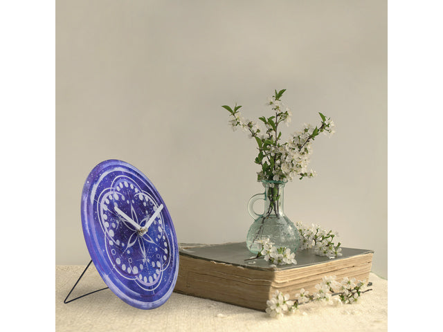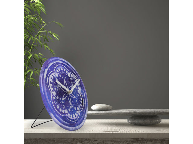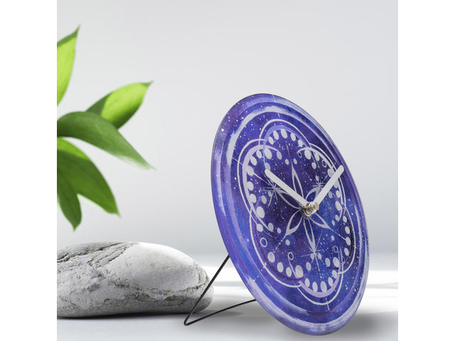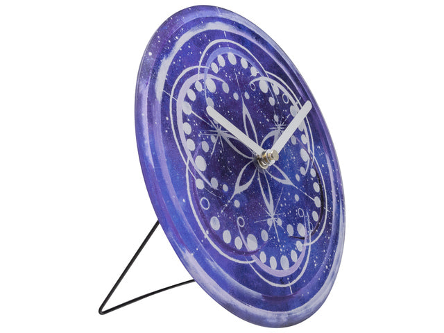 De NeXtime Cosmo Indigo Table stille klok (20cm) biedt een kalme, opbeurende spirituele reis aan met zijn donker blauwe ronde kosmische patroon gezeefdrukt op gehard glas. Ontworpen door WENergy. Deze klok werkt op 1 x AA-batterij (niet inbegrepen).