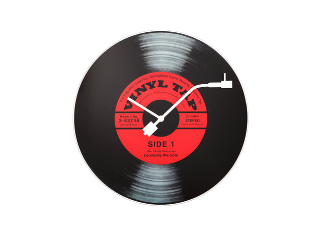 De NeXtime Vinyl Tap glasklok is bedrukt met een afbeelding van een zwarte LP met een rode cirkel in het midden en is hierdoor een echte eyecatcher. De grote spiegelende wijzer heeft de vorm van een pick-upnaald. Zo hoort u de muziek bijna echt spelen. De klok zal direct opvallen en is een uitstekend cadeau voor een muziekliefhebber. Deze wandklok past perfect in elk interieur. Afm. 43cm