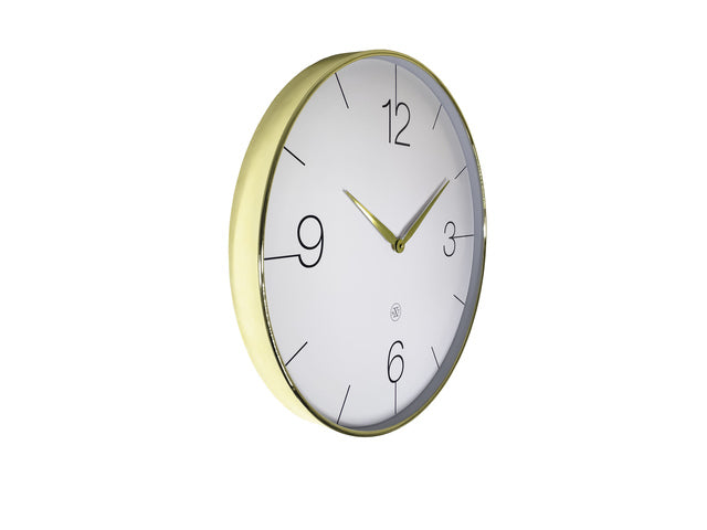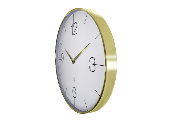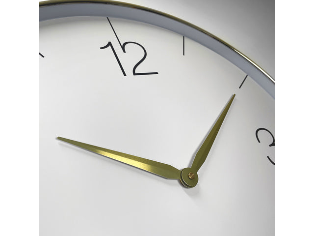 De Finesse Large (51 cm) is een mix van eenvoud en elegantie. Deze stille wandklok heeft een minimalistische stijl en de dunne gouden rand en wijzers voegen een vleugje verfijning toe aan elke ruimte. Deze klok werkt op 1 x AA-batterij (niet inbegrepen).