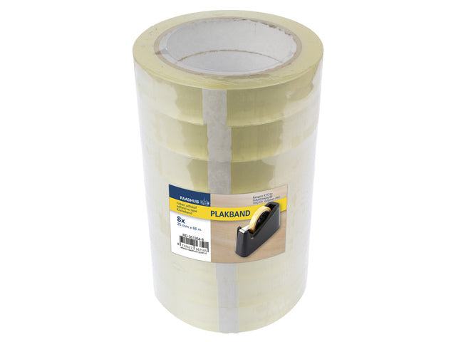 Dit veelzijdig plakband kan gebruikt worden op kantoor voor professionele verpakkingen als thuis voor knutselprojecten en hobby's. Deze PP-tape biedt soepele en geruisloze afrolprestaties en is ideaal voor het afsluiten van o.a. dozen, boxen en zakjes. Door de grote kern is het plakband geschikt voor de B2 plakbandafroller. Afmeting 25mm x 66 meter (bxl). Kleur tape transparant. Materiaal PP met acryllijm op waterbasis, dikte 25 micron, kleefkracht 4,0kg/cm. Inhoud 8 rollen.