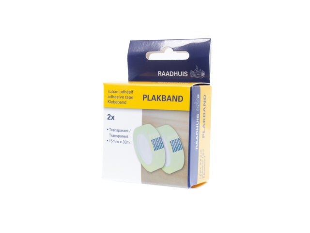 Zelfklevende transparant tape voor veelzijdig gebruik op kantoor, winkel, magazijn en thuis. Formaat 15mmx33m. Verpakt per 2 rol. Toepasbaar voor B1 afrolapparaat.