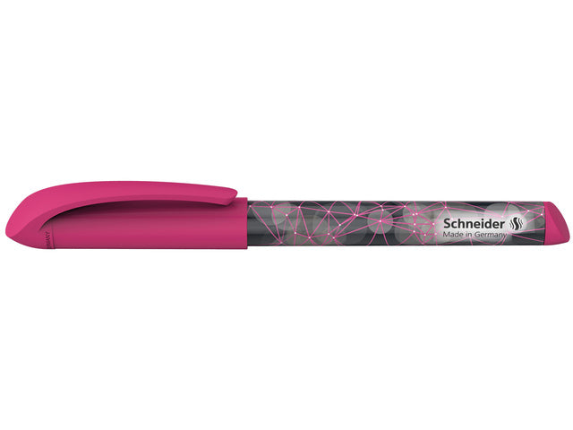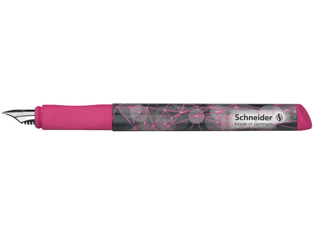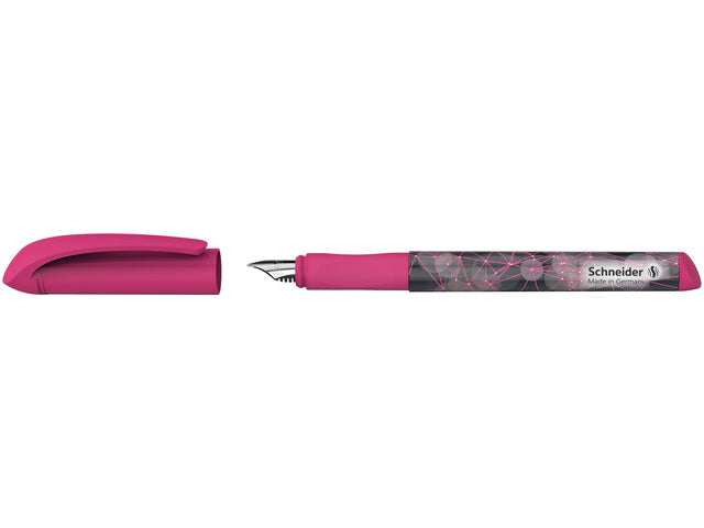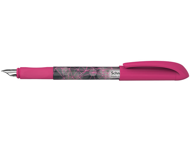 Vulpen met een ergonomische rubberen gripprofiel en een versterkte roestvrij stalen penpunt M. Attractief design op de houder, stevige kunststof clip en standaard inktpatroon met uitwisbaar koningsblauwe inkt. Geschikt voor zowel rechts- als linkshandigen. Houderkleur: roze