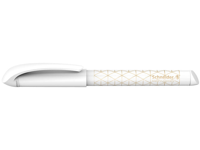 Vulpen met ergonomisch rubberen greepprofiel en versterkte stalen penpunt M. Aantrekkelijk gedecoreerde houder, robuuste kunststof clip en standaard inktpatroon, koningsblauw, uitwisbaar. Zowel geschikt voor links- als rechtshandigen. Kleur: Goud