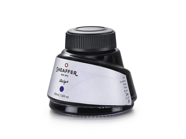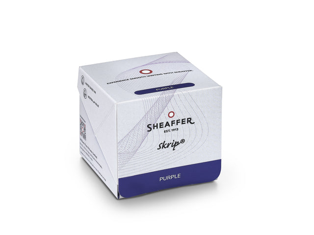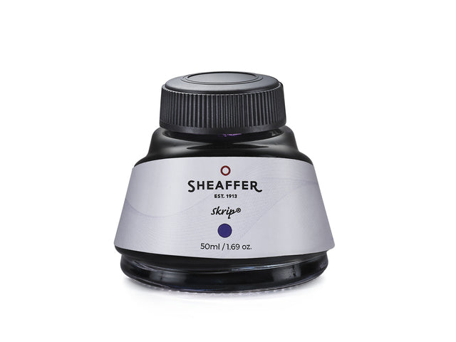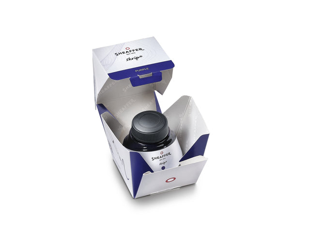 Sheaffer inktpotje Skrip 50 ml met paarse inkt. Skrip is een watergebaseerde, pH-neutrale inkt van hoge kwaliteit die compatibel is met alle vulpennen en gebruikt kan worden voor het vullen van een converter (artikelnummer: SF-96700). De speciaal samengestelde inkt vloeit soepel over het papier.