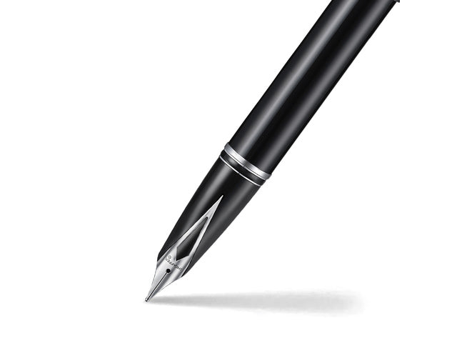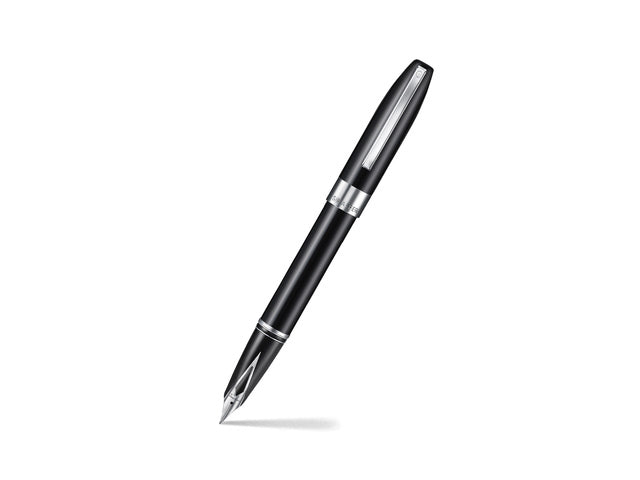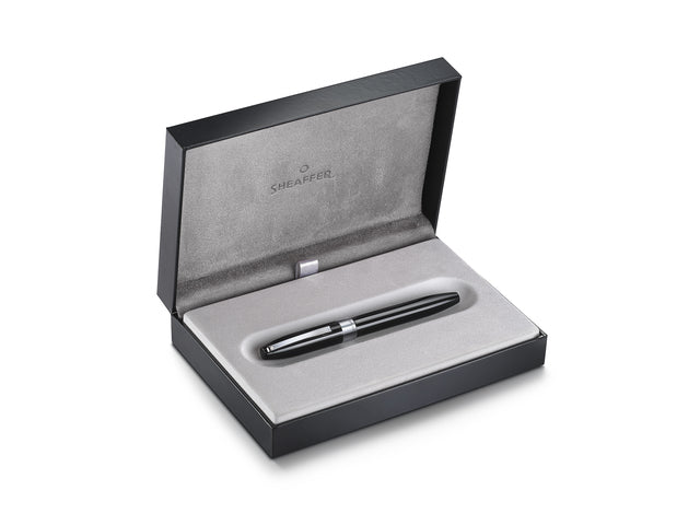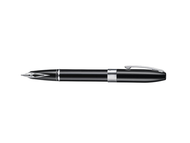 Sheaffer vulpen Legacy 9064 in zwart met chroom gepolijste afwerking is voorzien van een penpunt M van roestvrij staal dat een nauwkeurig en betrouwbaar schrijfcomfort garandeert. Inclusief een Sheaffer converter die zelf gevuld kan worden. De Sheaffer vulpen Lecacy met robuust sigaarvormig profiel en ingelegde penpuntontwerp roept een gevoel van luxe vintage op. De wereldwijd erkende witte Sheaffer stip, die symbool staat voor schrijfexcellentie, kwaliteit en prestige, is terug te vinden op de clip. De Sheaffer Legacy pennen zijn beschikbaar als vulpen, rollerball en balpen en worden geleverd in mooie geschenkdoos.