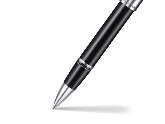 Sheaffer rollerball Legacy 9064 in zwart met chroom gepolijste afwerking garandeert een nauwkeurig en betrouwbaar schrijfcomfort. Inclusief een universeel standaard Sheaffer medium rollerball vulling in zwart met roestvrijstalen punt en keramische bal. De Sheaffer rollerball Lecacy met robuust sigaarvormig profiel roept een gevoel van luxe vintage op. De wereldwijd erkende witte Sheaffer stip, die symbool staat voor schrijfexcellentie, kwaliteit en prestige, is terug te vinden op de clip. De Sheaffer Legacy pennen zijn beschikbaar als vulpen, rollerball en balpen en worden geleverd in mooie geschenkdoos.