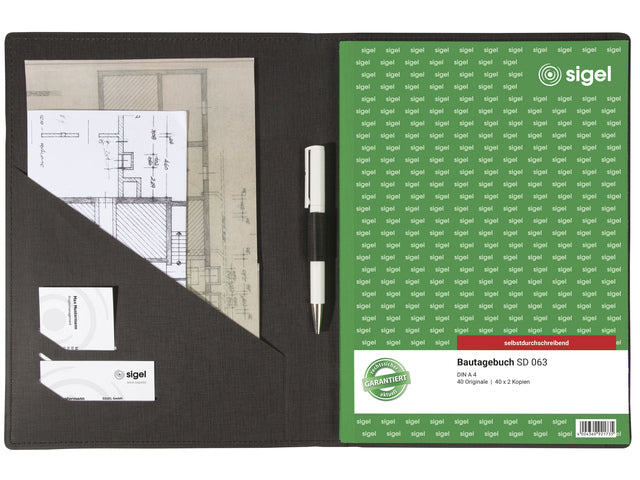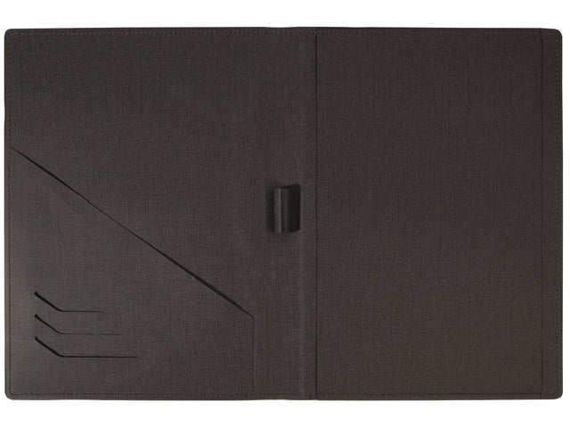 Kunststof blokhoudermap als bescherming en omslag voor alle formulierenboeken in A4-formaat. Met grote insteekflap voor documenten, 2 insteekvakken voor visitekaartjes, pennenlus en insteekflap voor logboeken of formulierenboeken. Formaat 235x315x10mm. Vuil- en waterafstotend oppervlak. Kleur antraciet.