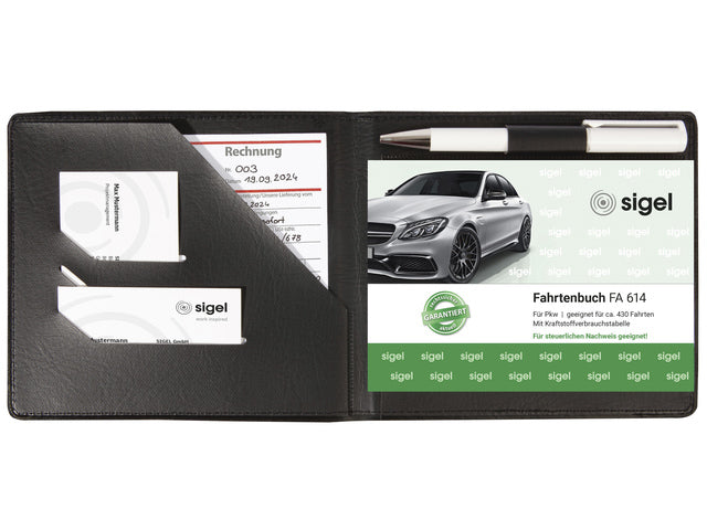 Schrijfmap Sigel A6 zwart met penvak, insteekvak en blokhouder