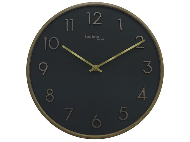 Wandklok WT 2430 (30 cm ) is een quartz klok in zwart/goud met kunststof houtstructuur. Het heeft een geluidloos uurwerk met tijdsaanduiding in cijfers. Werkt op 1x AA batterij LR06 (niet meegeleverd).