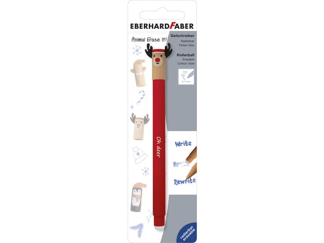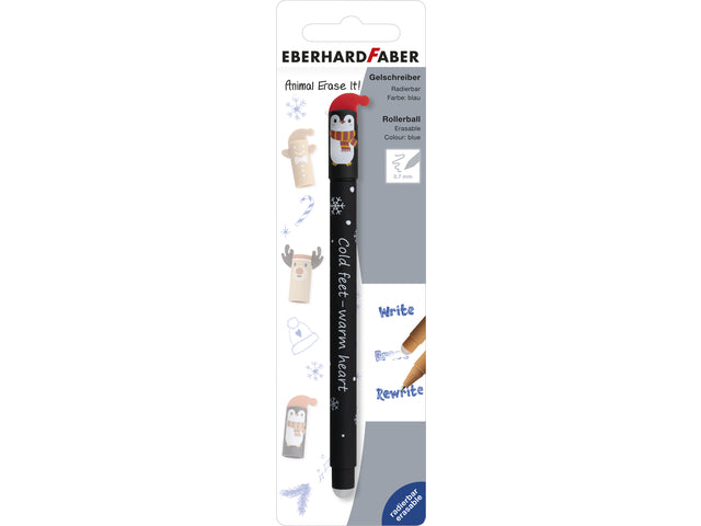 Gelpen Eberhard Faber Animal Erase-it Limited winter editie 1 stuks op blister assorti designs (3 verschillende) schrijfkleur blauw